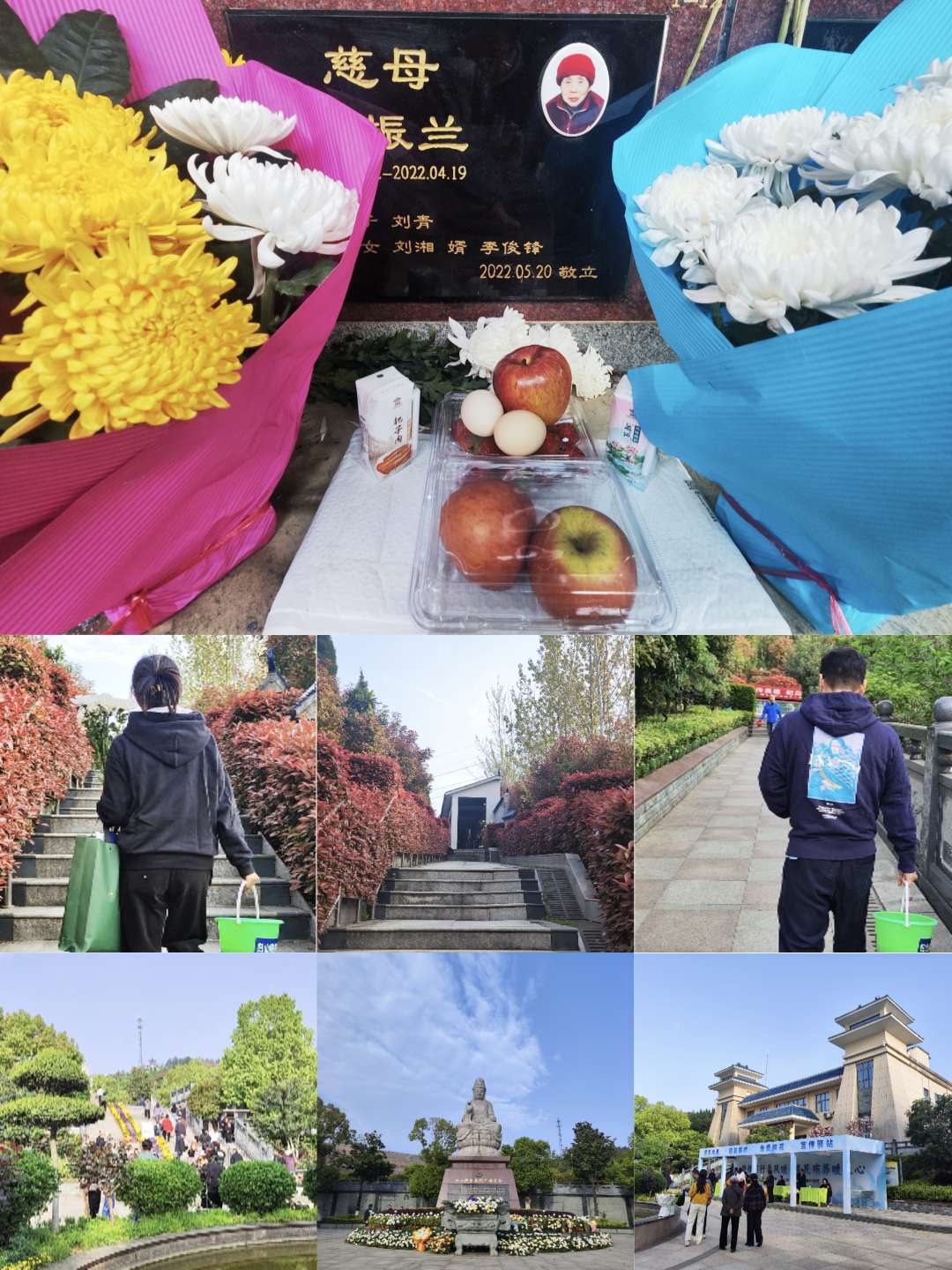 时光的长河 带走人生的喜怒哀乐 二0二二年四月十九日 母亲离开了这个喧闹的世界 融入广阔的蓝天 时光的转瞬 我与母亲已是天地相隔 无法企及 眼前一排排墓龛 像在讲述着离别的思念 我不知道 送上的鲜花母亲是否能收到 妈妈: 您到底在哪儿 又以何种形态存在于我的身边 凌晨四时 窗前的鸟鸣是您的化身吗 时隔365天我来到您的归山之处 很想在旷野中高声地呼喊 但又怕打扰到您旁处邻居的心 只能让想念的泪水在脸颊上肆意流淌 站在您的墓前 奉上谷雨的春色 祭拜之后 留下了一幕幕与母亲之间的记忆 沧海桑田 您已融入大自然 日月星辰依旧朝夕暮转 在这个难过也难忘的日子 想要告诉母亲 您的子女 一路走来 行阳光正